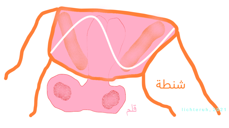 Illustration, arabisch: شنطة Tasche, قلم Stift